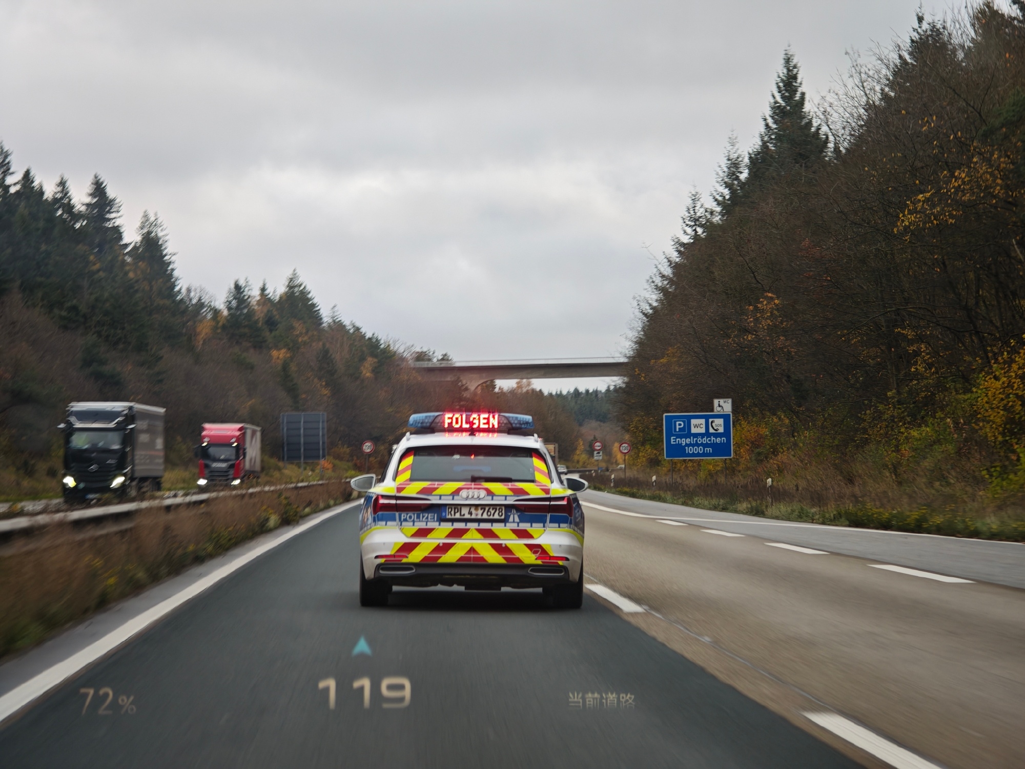 AiSiri网11月12日讯,博主“堂主撩车”日前分享了一次略带戏剧性的德国高速公路经历:驾驶小米SU7 Ultra超速被警方拦截,但最终未被罚款,反而引来了警察对车辆的好奇。