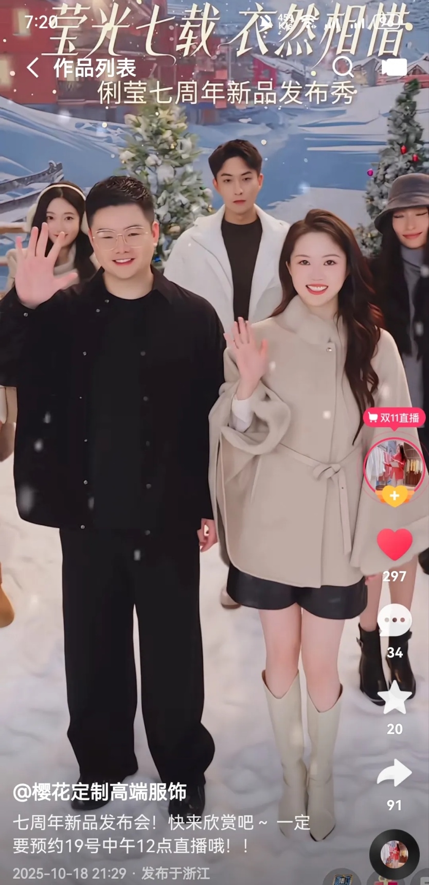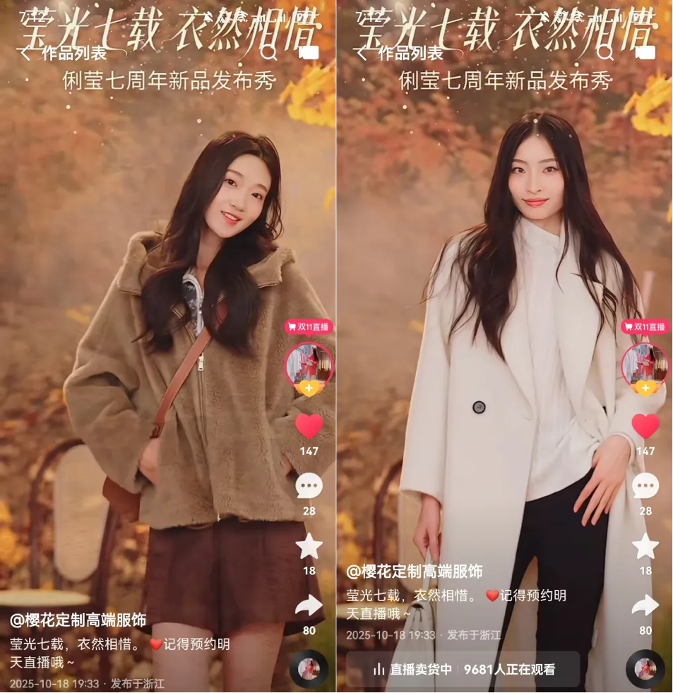 靠自有供应链保障品质,以内容场迭代抢占用户心智,“樱花定制高端服饰”主播安然也正完成从源头工厂带货主播到“品牌主理人”的关键跨越。