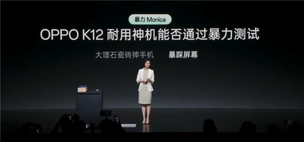 Monica曾在OPPO发布会用高跟鞋踩手机